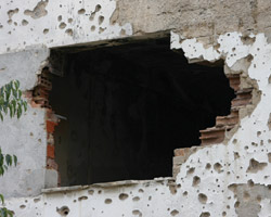 Mostar (slawisch: "Hüter der Brücke"), größte Stadt der Herzegowina, im Bürgerkrieg Frontlinie zwischen Kroaten und Bosniaken. Gekennzeichnet durch unglaubliche Zerstörungen.