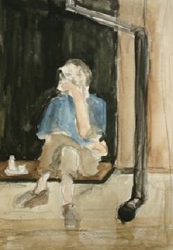 Da sitzt er. Auf einer schönen, dunkelbraun-lakierten Bank. Ich kann meinen Blick nicht von ihm wenden. Langsam schlürft eine Bedienung zu ihm herüber, bringt ihm Kaffee, gelassen. Messingfarben...